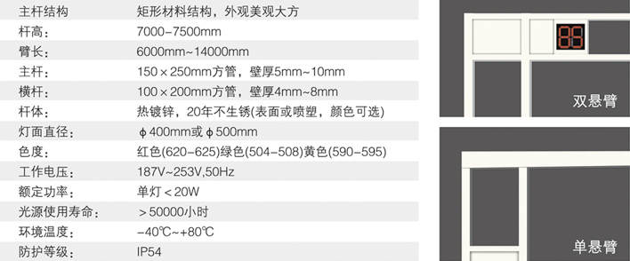 光源采用進口超高亮度LED。燈殼采用一次性鋁壓鑄或工程塑料注塑成型,燈盤發(fā)光面直徑為300mm. 400mm。燈桿選用優(yōu)質鋼板加工成型,經熱鍍鋅處理后表面噴塑。各項技術參數(shù)均符合中華人民共和國道路交通信號燈GB14887-2011標準。